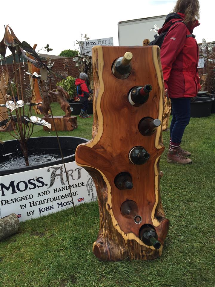 An exclusive range of Wine Racks. Made from Yew, Elm and Walnut. Available with optional extras such as side tables and carvings. Can be custom made for any application.
